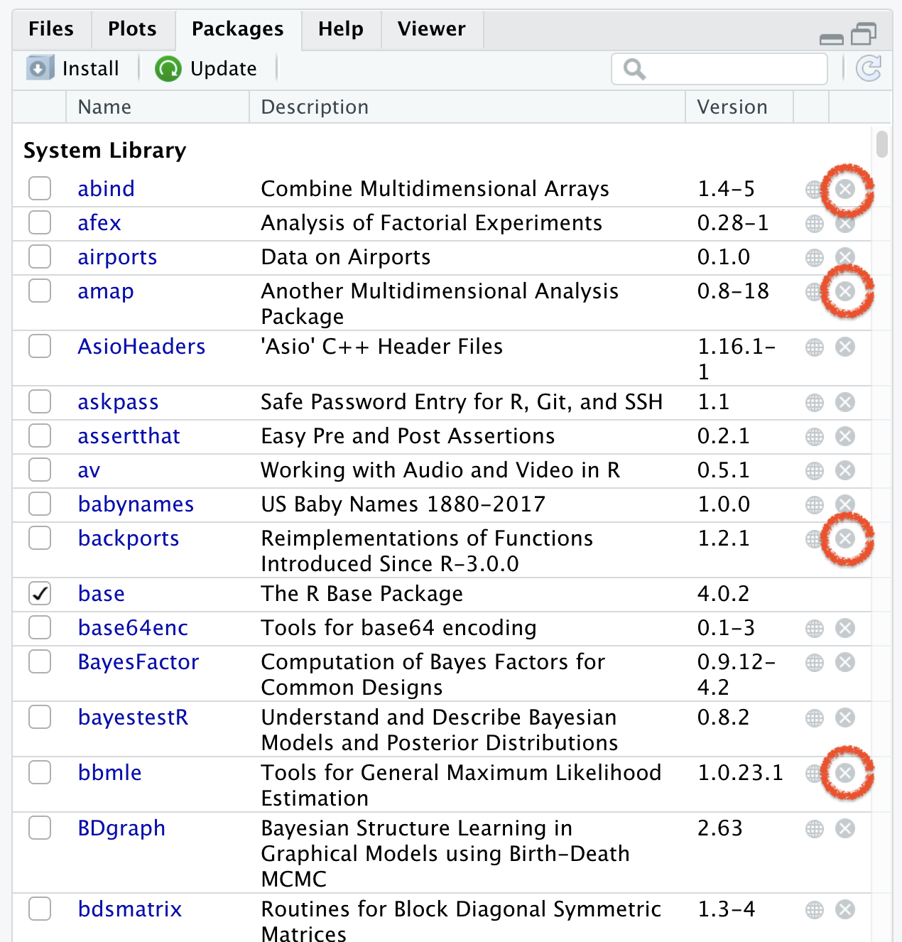 • If you un-install R or RStudio, you will lose all installed packages.