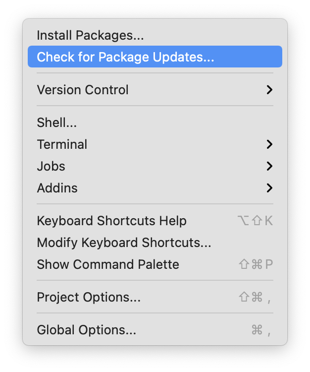 Tools \(\rightarrow\) Package Updates