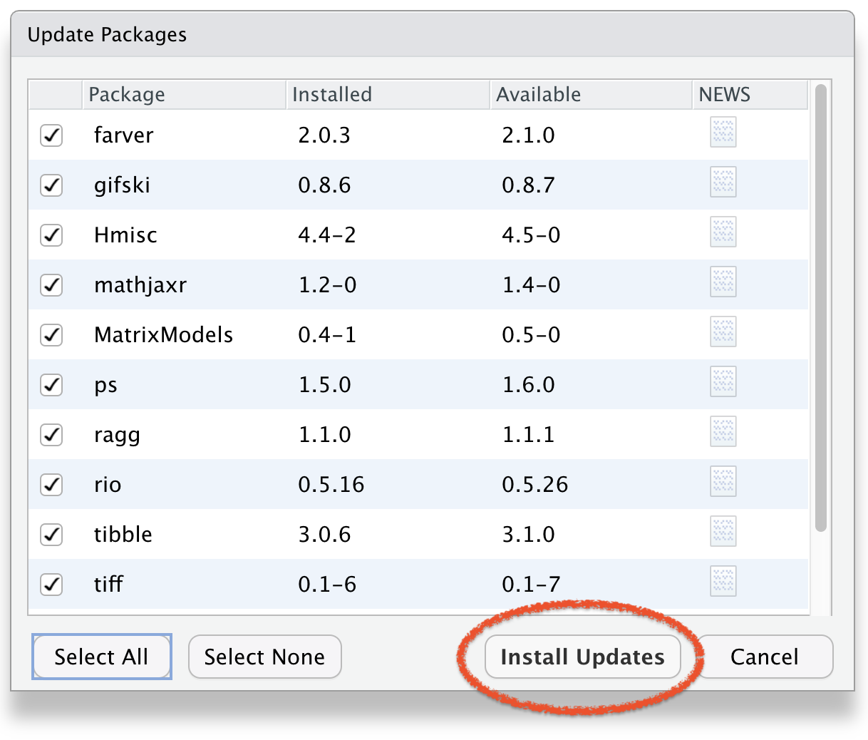 Select Packages to Update