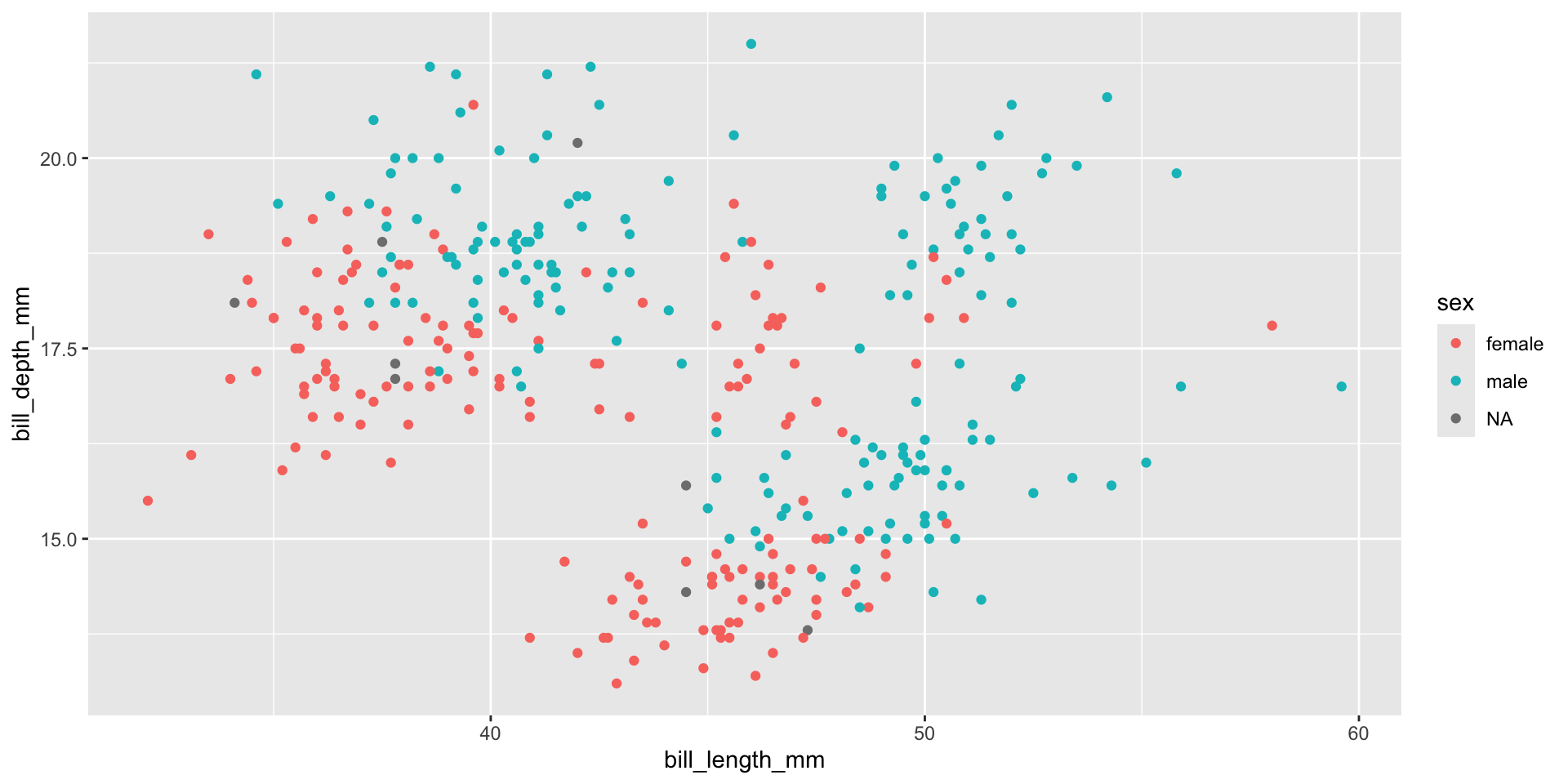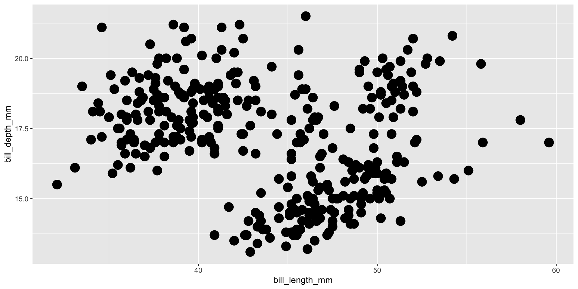 mapping = aes(x = bill_length_mm, y = bill_depth_mm)) +